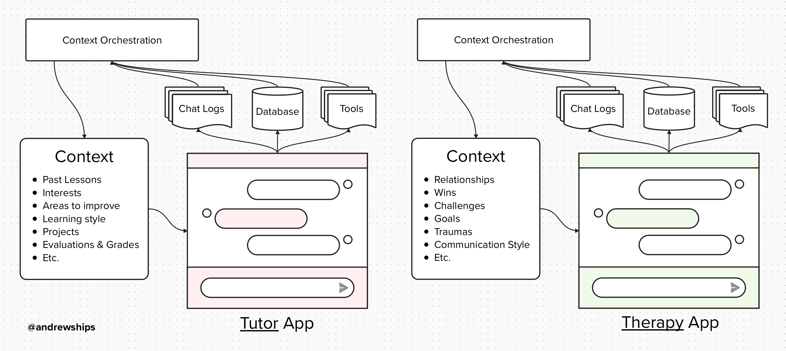 So the two products are identical in every way, except that they create and maintain very different contexts in the background while I interact with them. In the case of the Tutoring app, it stores things like: